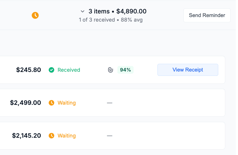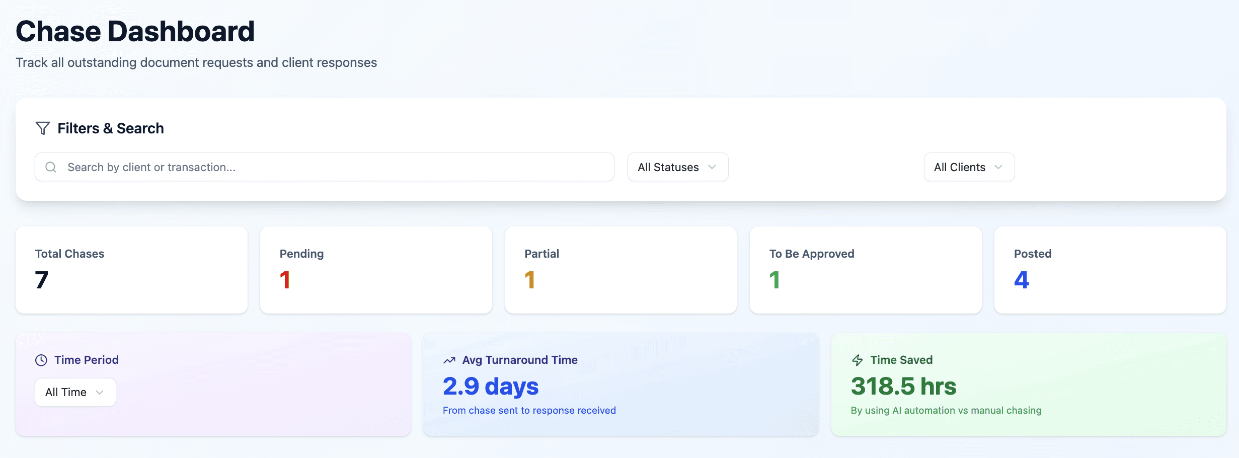 Penny's dashboard gives you an overview of pending, partial and ready to be approved chases
